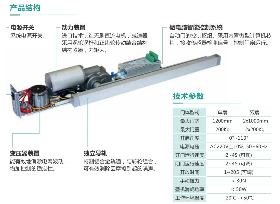 門機(jī)系統(tǒng)采用微電腦芯片,智能控制門體運(yùn)行開(kāi)閉。配置高效無(wú)刷直流電機(jī),壽命長(zhǎng),噪音小,動(dòng)力足。開(kāi)閉靈敏,安全可靠。外形美觀簡(jiǎn)潔。可選用多種聯(lián)動(dòng)方式:紅外/微波探測(cè)器、門禁、消防等。